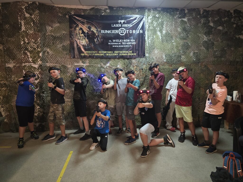 Gra w laserowy paintball oraz escape room przeznaczona jest dla dzieci od 10 roku życia zabawa w BUNKIER ARENA oraz od 9 roku życia zabawa w SPACE ARENA. Obie areny znajdują sie w tym samym obiekcie przy ul. Wielki Rów 40 a w Toruniu.
